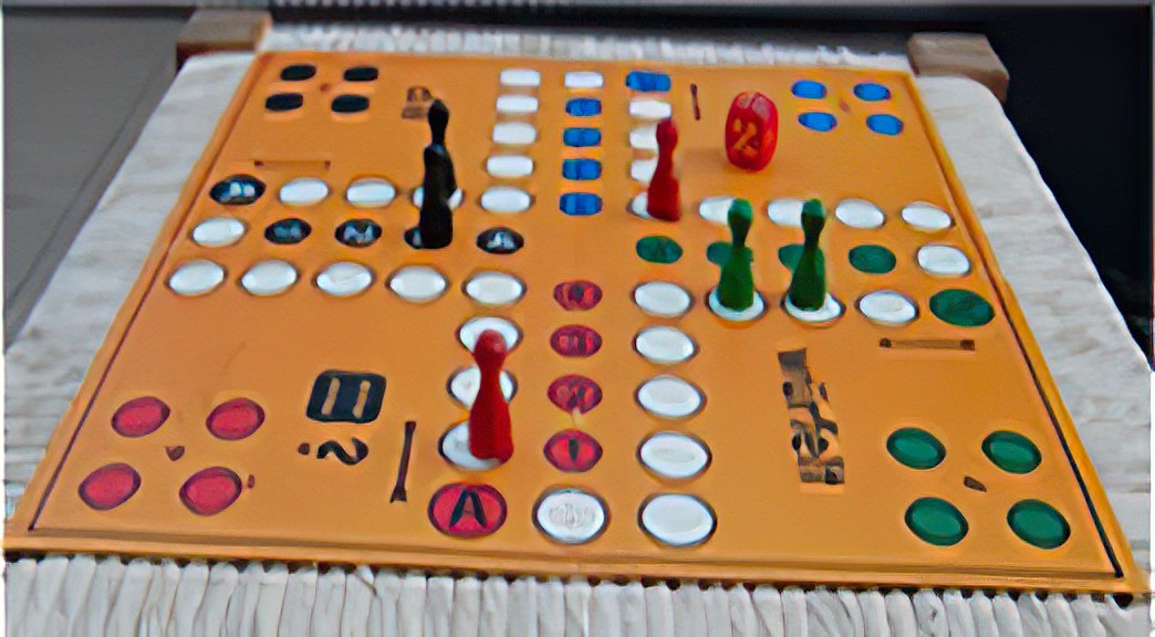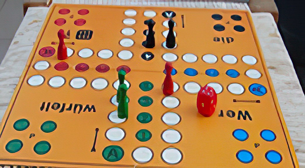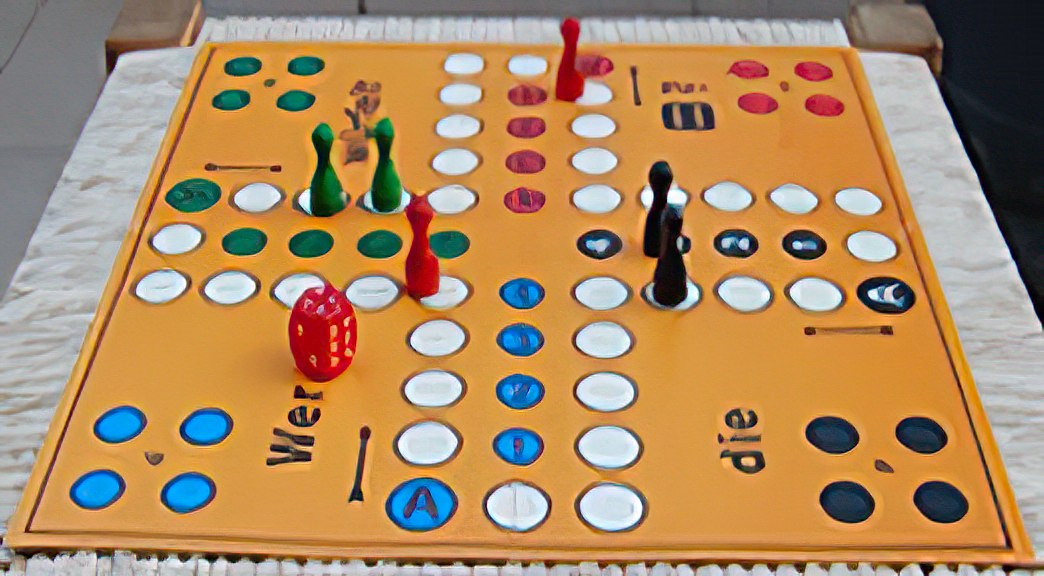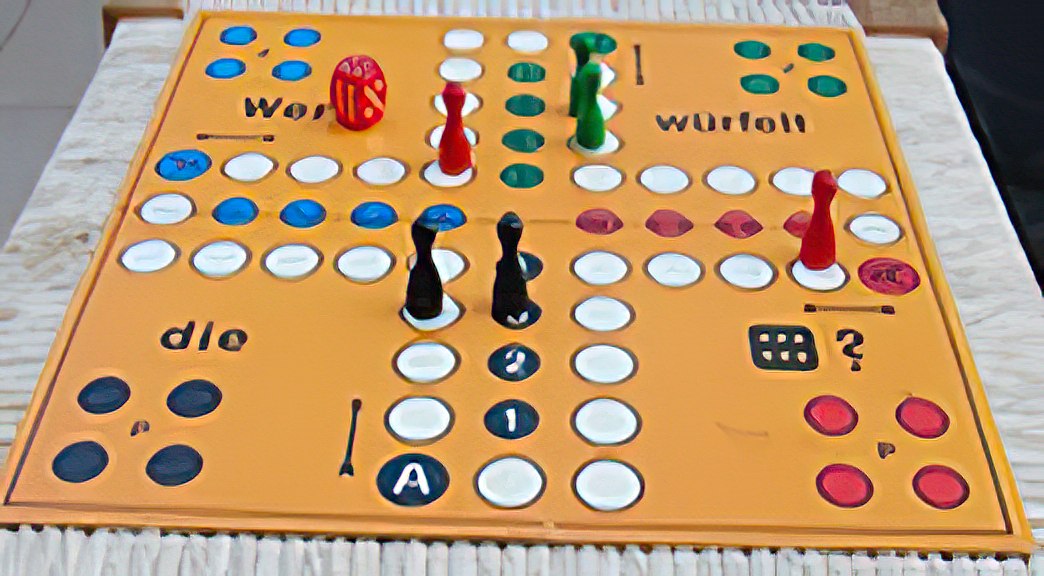 Dit is het bovenaanzicht van een spel. Sien, Artin, Leon en Trui spelen dit spel.
